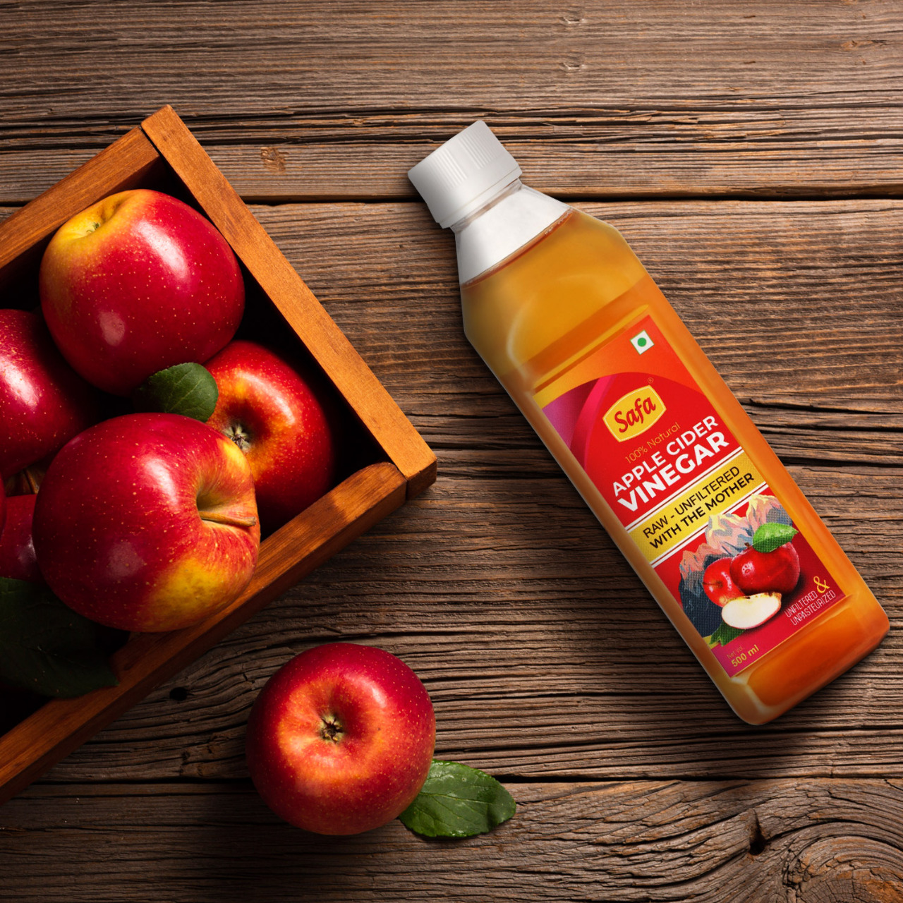 Juiced up from mountain-fresh, organic apples, Safa Apple Cider Vinegar is created by natural fermentation of apple juice into cider and further into vinegar. This apple cider vinegar is aged in barrels, imparting a smooth apple cider taste to it. Safa Apple Cider Vinegar is raw, unfiltered and unpasteurized, preserving its ‘mother’ and nutrients in tact. A natural remedy that aids in gut health, digestion, detoxification, metabolism, weight loss and diabetes, Apple Cider Vinegar is a must-have in your pantry. Sizzle up your salads or just detox with a tablespoon in chilled water.