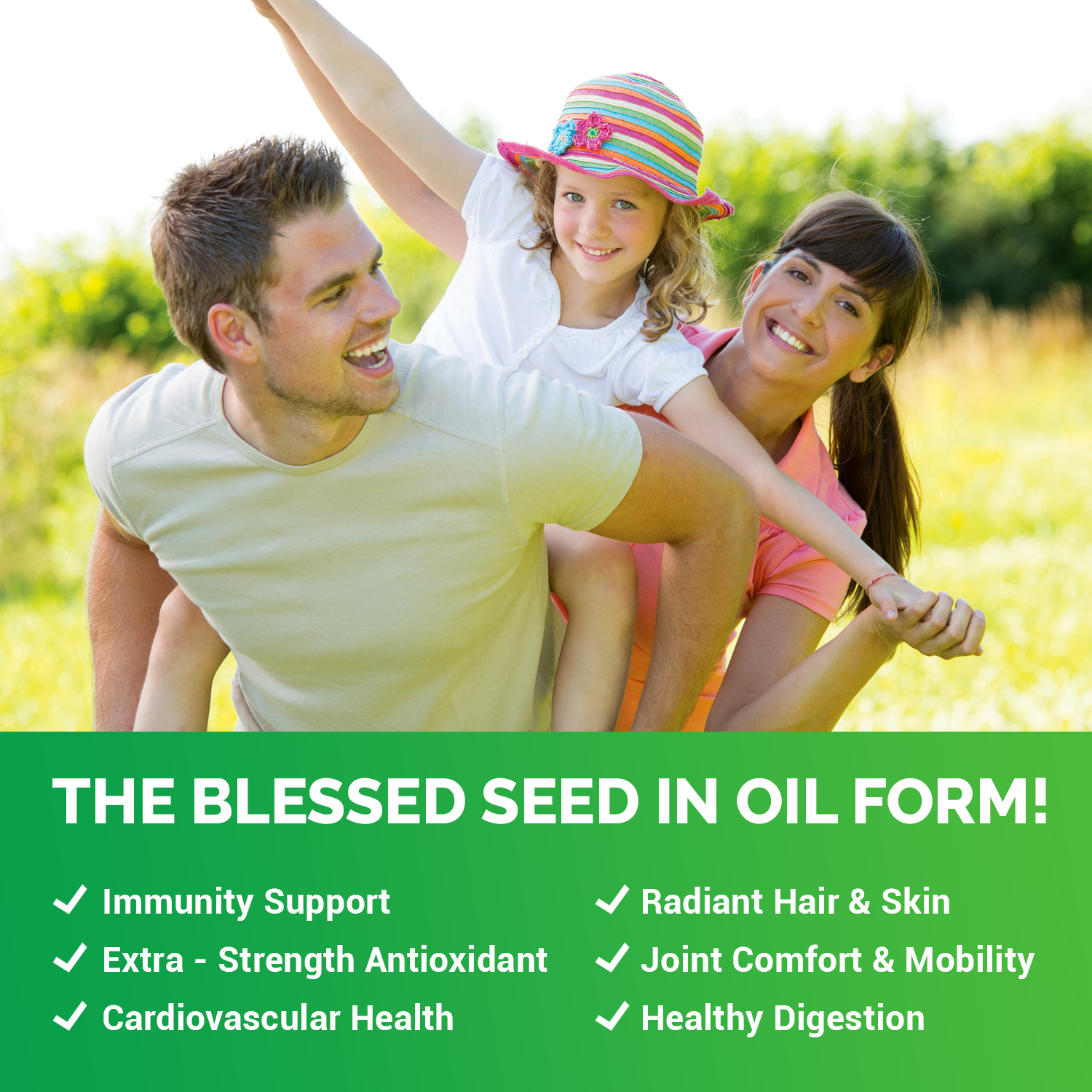 - ANTIOXIDANT SUPPORT: Owing to the rich amount of the active compound Thymoquinone in Black Seed Oil, it is a powerful antioxidant support from nature. Thymoquinone and its derivatives present in Black Seed Oil act as free radical scavengers, reducing oxidative stress. This prevents premature aging, deterioration and carcinogenic changes in the body. The antioxidant support is also essential to prevent degenerative diseases, cardiovascular diseases and supports the skin and hair.