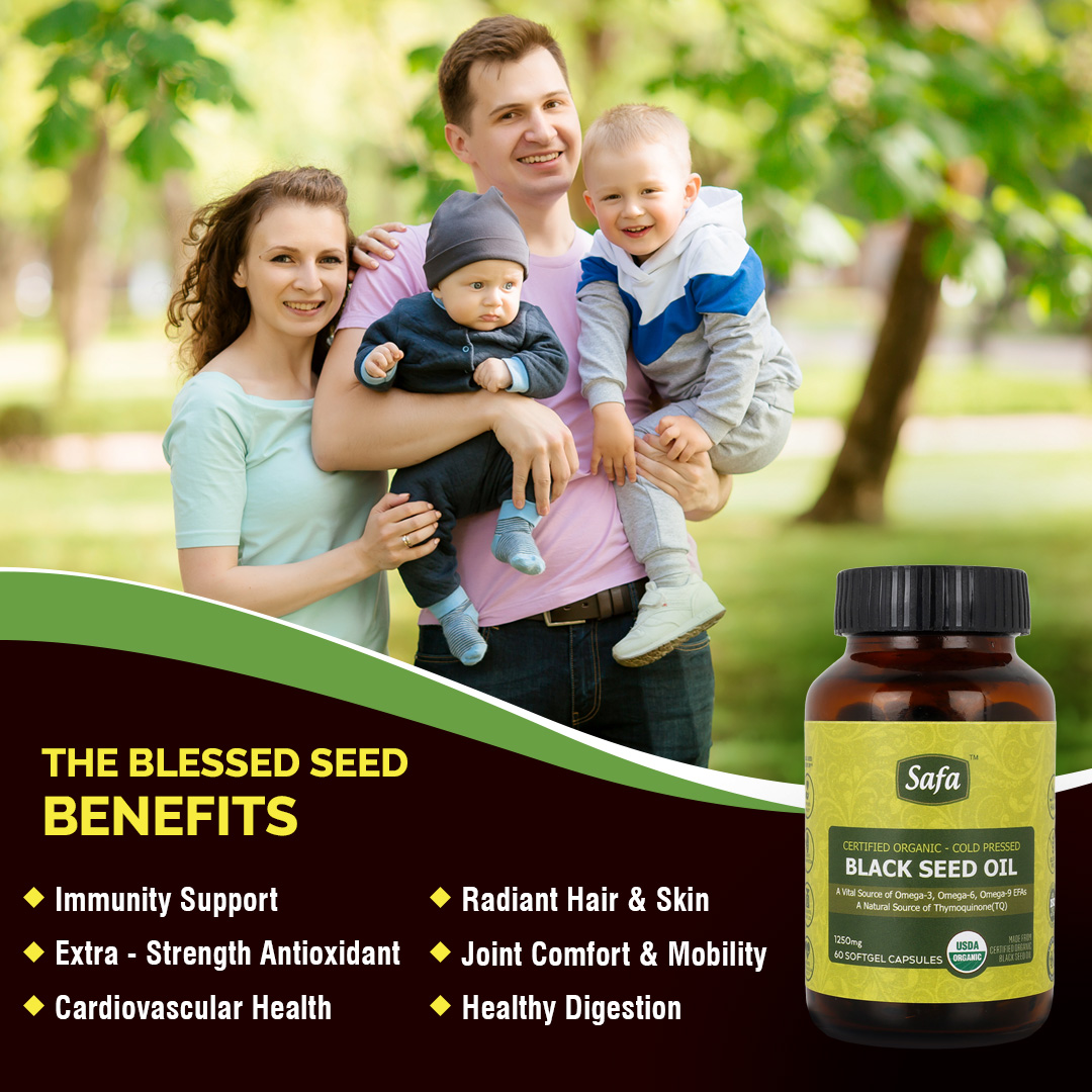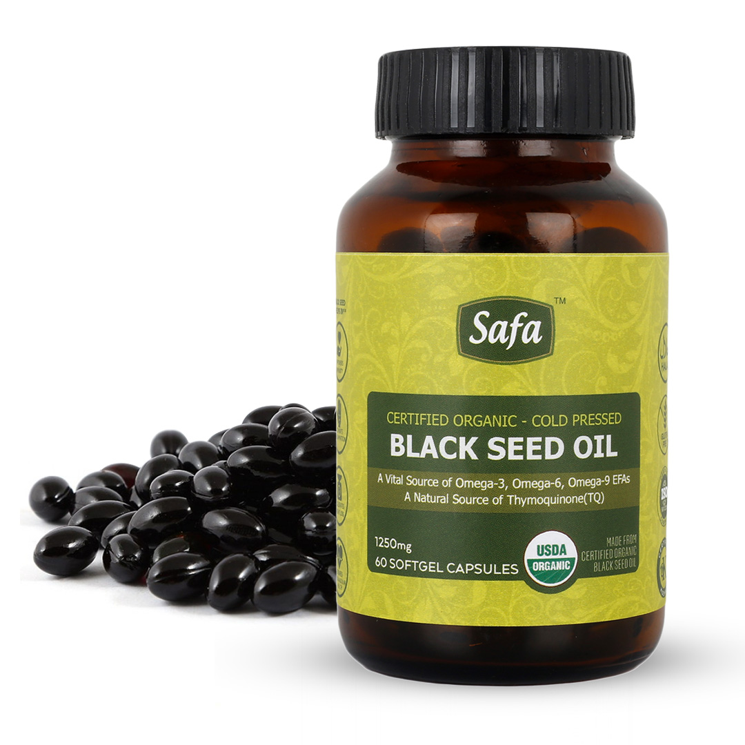 Safa Organic Black Seed Oil in Softgel Capsules 1250mg. 60 Capsules