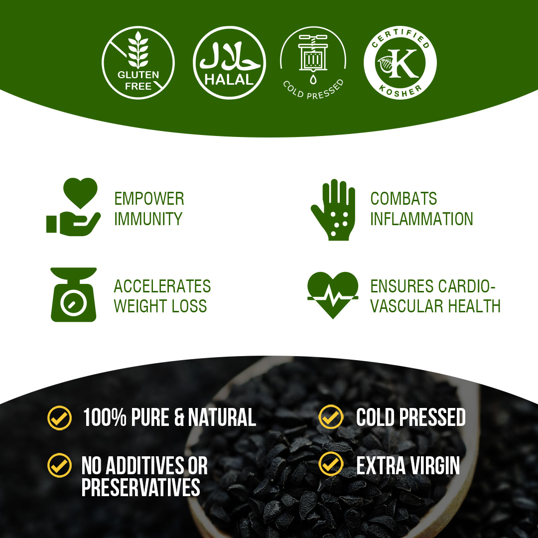 Safa Black Seed Oil Capsules are made from Certified Organic Black Seed Oil. The ingredients are Halal and Kosher-Certified, Non-GMO and Gluten-free.