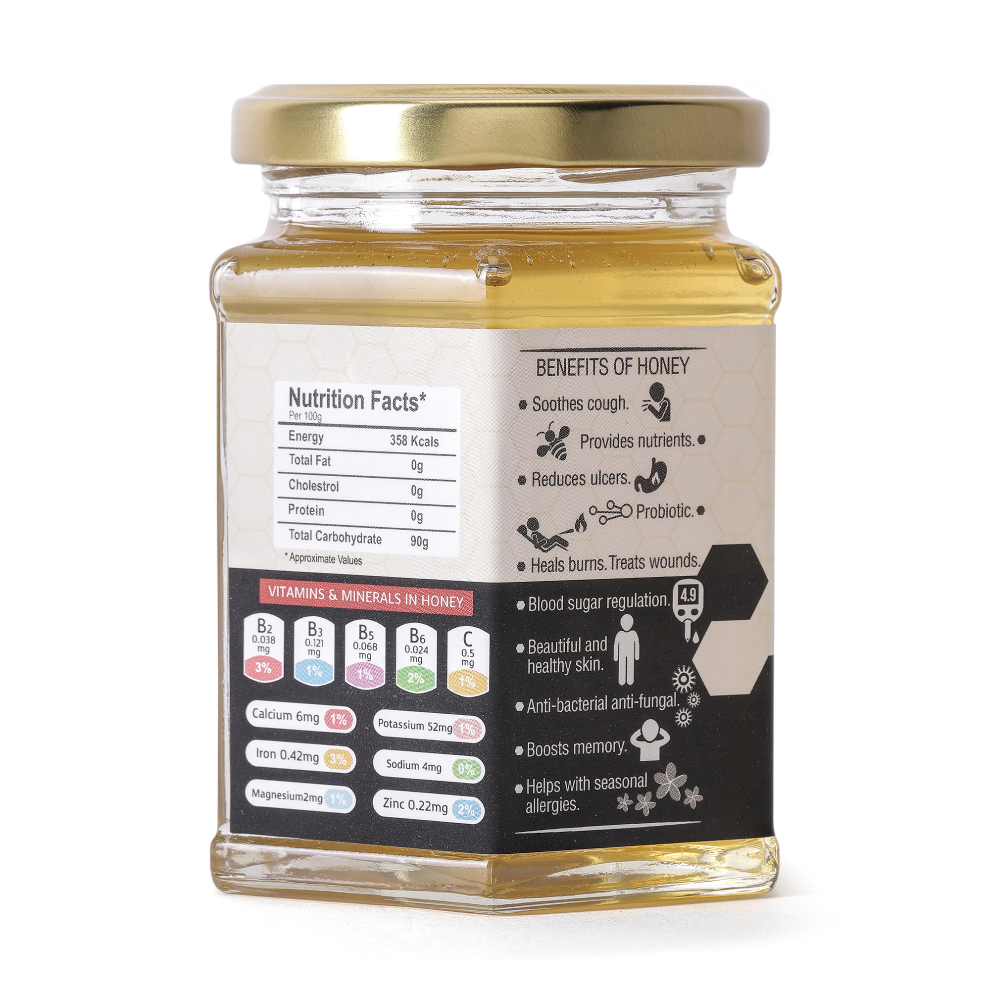 Hailing from intensely fragrant blossoms of Indian Borage from the mountains, Safa Raw Borage Honey is the perfect nectar for a heavenly twist to your day. Also known as Solai or Kashmiri White Honey, this clear, light-coloured honey caresses your taste buds with a delicate and exotic taste that will leave you wanting for more. Sourced from the popular medicinal herb Plectranthus rugosus, Raw Borage Honey is a must-have in your cupboard for its healing and rejuvenating qualities. Add a swish of scented sweetness to your drinks or meals with this uplifting aromatic honey and face the world with fortitude. Because, you can!