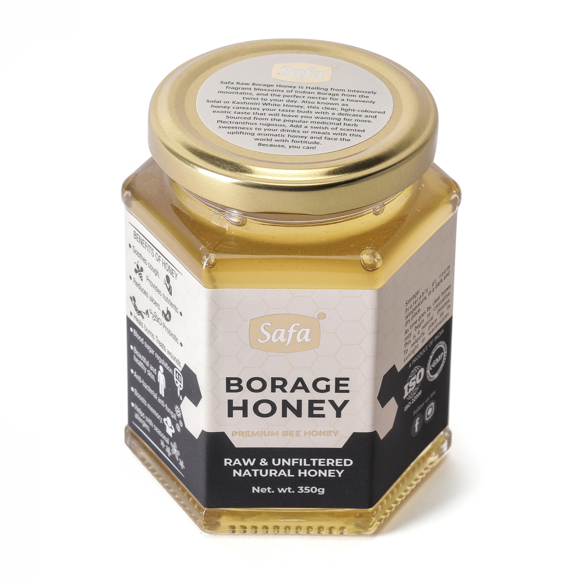 - Packaging: Safa Raw Borage Honey comes in an elegant glass jar. You can easily store it on your shelf. It is accredited by the International Food Safety Management certifications – ISO-22000-2005 and HACCP
