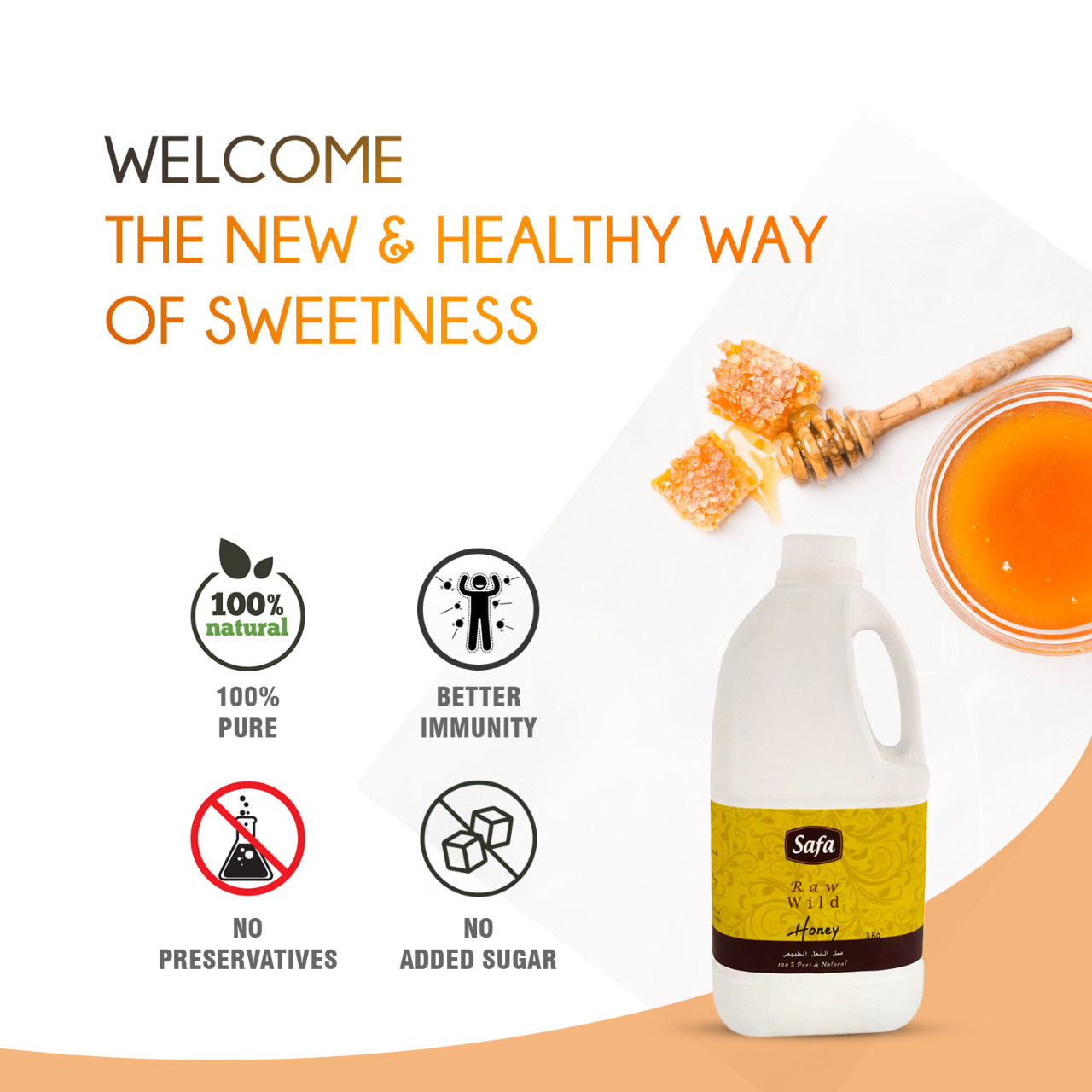 - WILD HONEY: Wholesome with nutrients, enzymes, antioxidants and anti-inflammatory compounds, Safa Raw Wild Honey is a staple on every kitchen table, providing genuine nourishment and unmistakable taste of purity. Unfiltered, unprocessed and unheated, this multifloral wild honey has all its goodness conserved to nourish you from within. Enjoy its nostalgia-inducing taste with your herbal teas, toasts or pancakes or as a daily natural supplement for an active and healthy life.