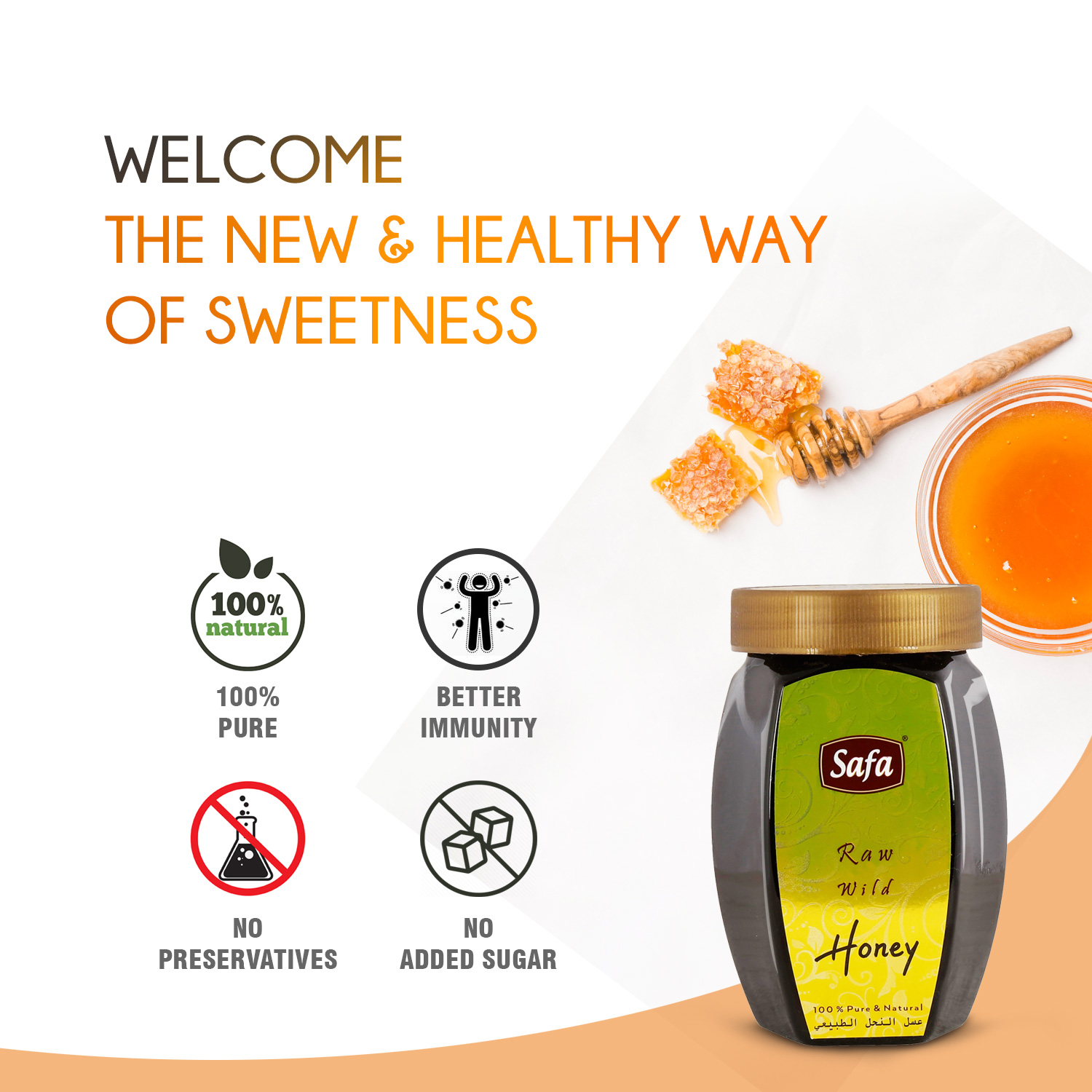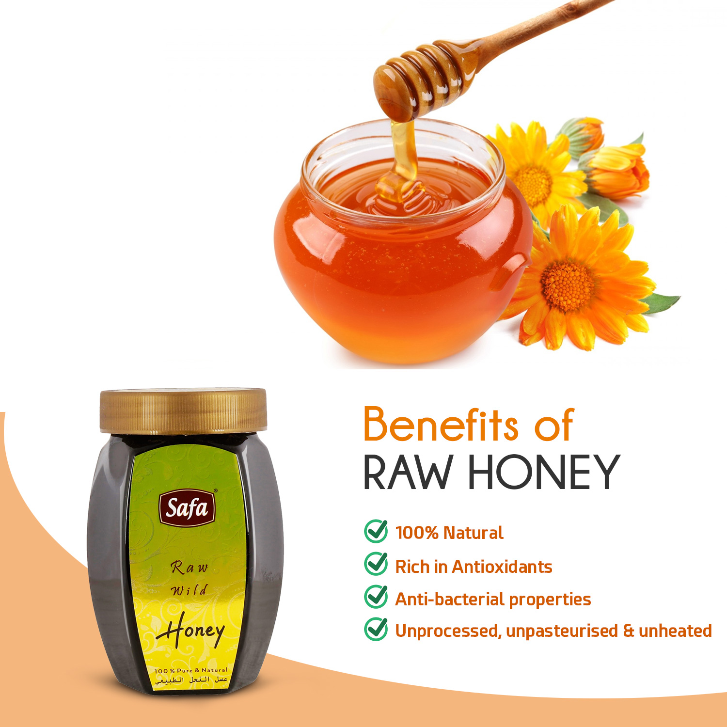 - WILD HONEY: Wholesome with nutrients, enzymes, antioxidants and anti-inflammatory compounds, Safa Raw Wild Honey is a staple on every kitchen table, providing genuine nourishment and unmistakable taste of purity. Unfiltered, unprocessed and unheated, this multifloral wild honey has all its goodness conserved to nourish you from within. Enjoy its nostalgia-inducing taste with your herbal teas, toasts or pancakes or as a daily natural supplement for an active and healthy life.
